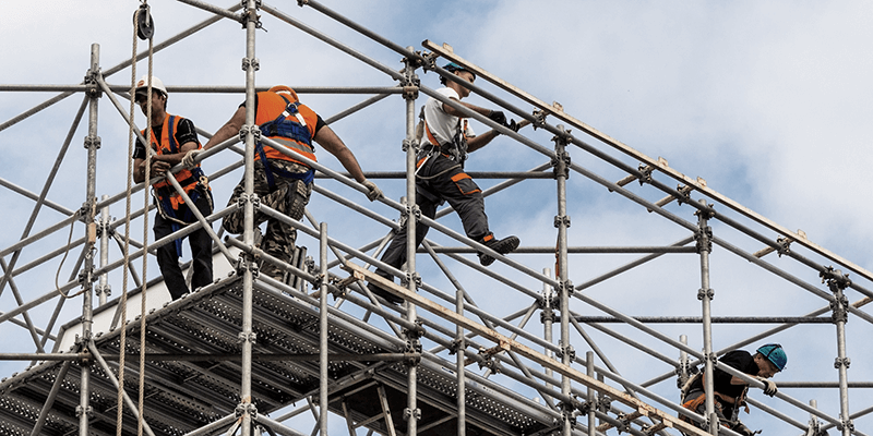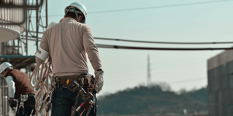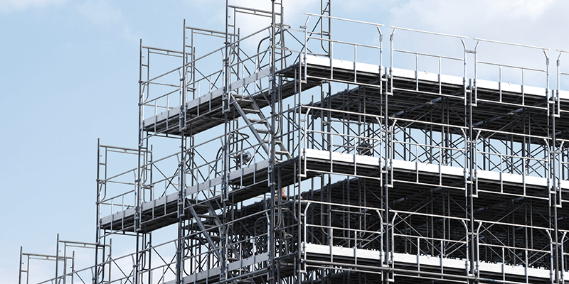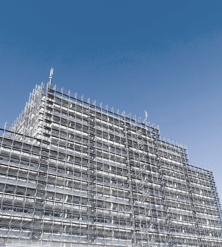 ビルや橋梁、倉庫や発電所など、様々な構造物の建設に必要となる、足場・安全設備を設置します。外壁の塗装や補修のための工事にも必要となります。当然足場の解体も含まれます。